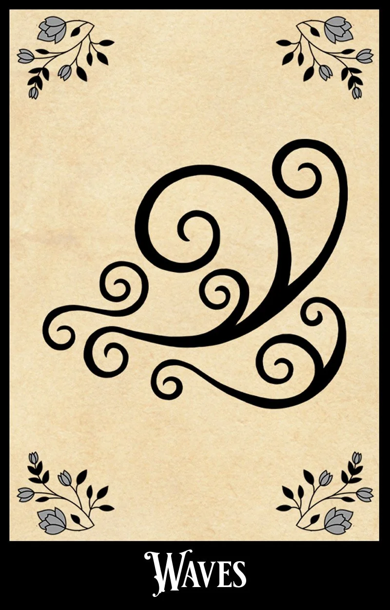 The waves rune is a symbol of both great creativity and potential confusion. The flow of water offers great success in creative projects, whilst a turbulent tide can feel overwhelming and carry you away.