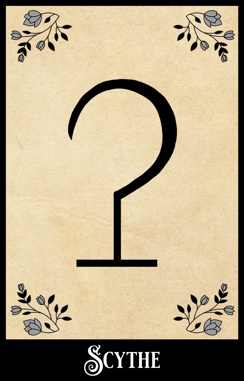 The rune of endings, scythe, foretells of cutting away the past, letting go of that which no longer serves you, and severing ties. All things must end for new beginnings to be possible, although this can be hard to accept if you fight against or fear the change.